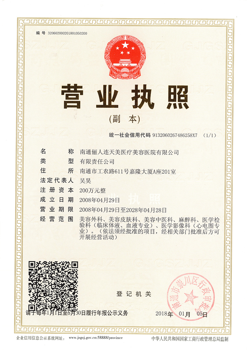南通儷人連天美醫(yī)療美容醫(yī)院是與著名的醫(yī)療美容集團(tuán)合作建立的醫(yī)院,醫(yī)院提供高品質(zhì)的醫(yī)療美容服務(wù)。2008年,南通儷人連天美醫(yī)療美容醫(yī)院落戶南通,成為由南通衛(wèi)生局審批的專業(yè)醫(yī)療美容醫(yī)院。南通儷人連天美醫(yī)療美容醫(yī)院,特別設(shè)有專業(yè)的整形美容科、皮膚美容科和微創(chuàng)美容科三大科室,致力于為廣大求美者提供全方位的醫(yī)療美容服務(wù)。南通儷人連天美醫(yī)療美容醫(yī)院為求美者建立個(gè)人終生美麗檔案,一對(duì)一進(jìn)行細(xì)致服務(wù)。 11年來(lái),南通儷人連天美醫(yī)療美容醫(yī)院,不斷引進(jìn)先進(jìn)設(shè)備,不斷完善醫(yī)美技術(shù),一批優(yōu)秀、專業(yè)而穩(wěn)定的醫(yī)生團(tuán)隊(duì),為無(wú)數(shù)求美者鑄就美麗夢(mèng)想。